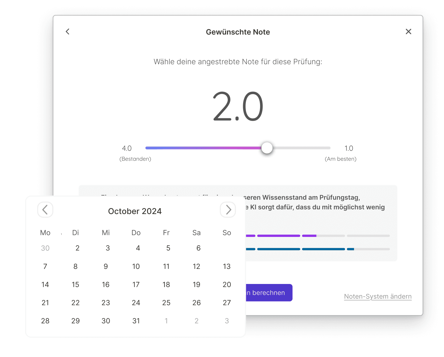 Gib das Datum deiner Prüfung und deinen aktuellen Wissensstand an. Dadurch kann Retain sicherstellen, dass du alles bis zur Klausur beherrscht.